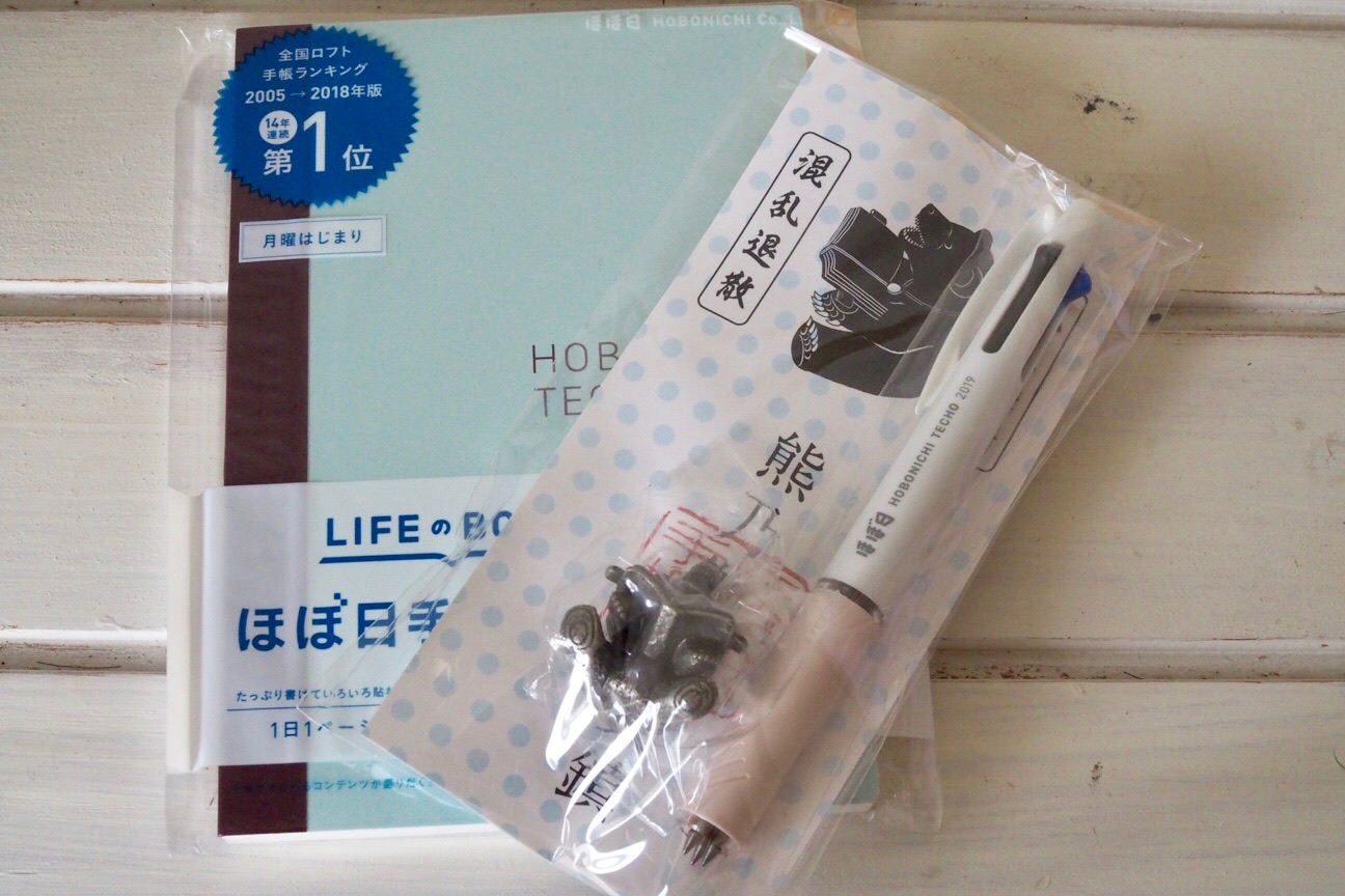 ちなみに、2019年のほぼ日手帳にはおまけとして、クマの形をしたぶんちんとオリジナルボールペン(3色ジェットストリーム)がついてきます。