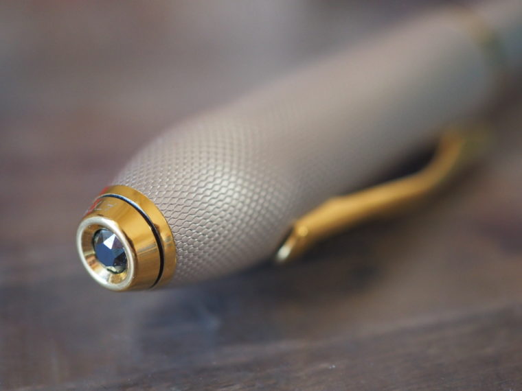キャップの先端にはスワロフスキーが一粒キラリと輝いています。