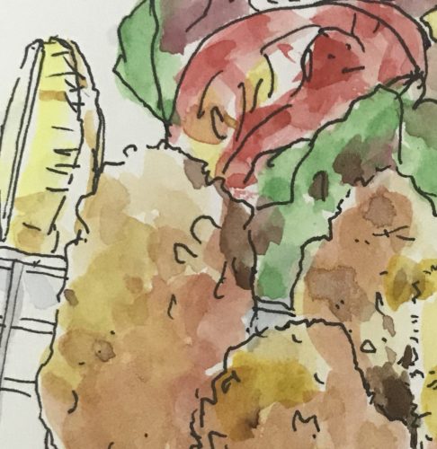 そして、初めは丁寧にカキフライを描いていたのですが、だんだん雑になってしまいました。