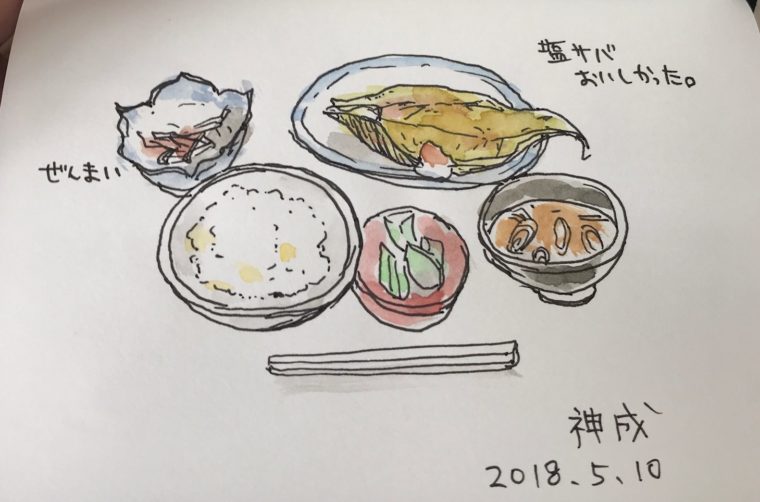 とりあえず、今日食べたお昼ご飯をuni スタイルフィットの黒で描いて水彩画で着色してみました。